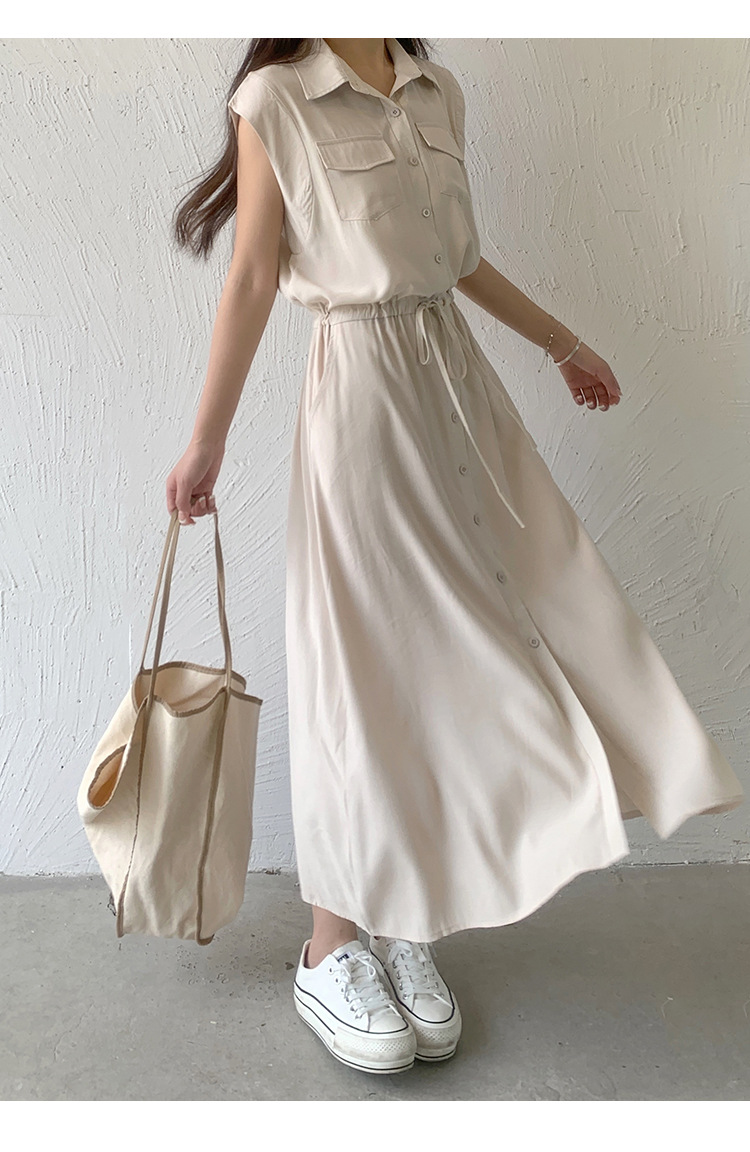 • 商品名称:2023夏季新款日式无袖口袋无袖中长款休闲翻领连衣裙衬衫裙
