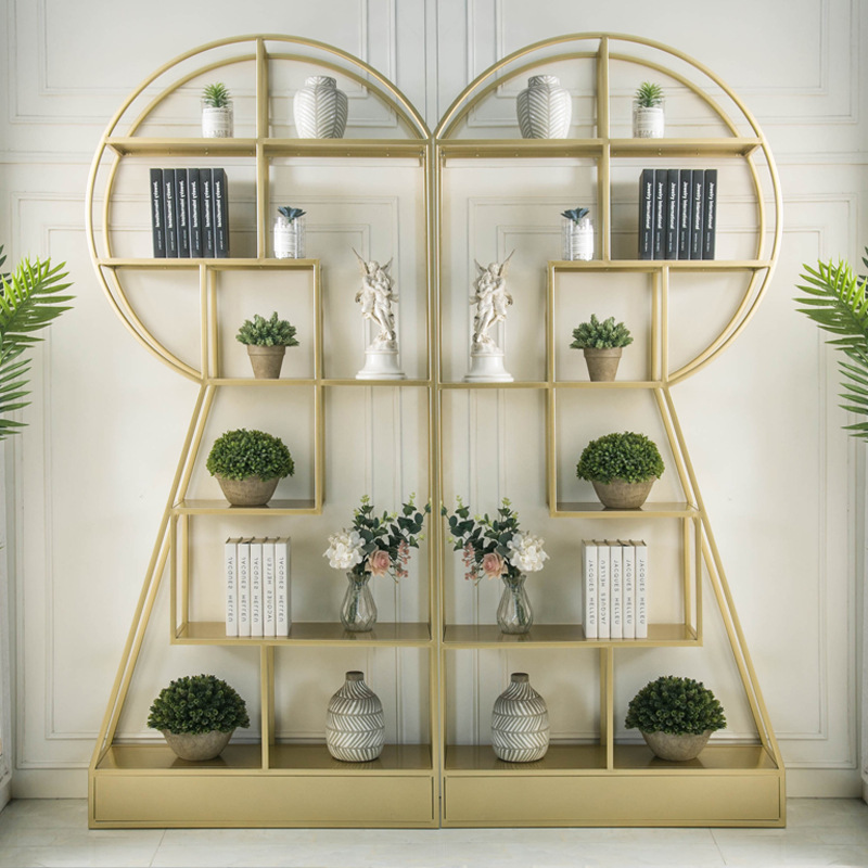 轻奢铁艺书架置物架客厅落地搁板架办公室餐厅屏风金属书柜展示架