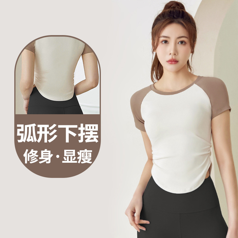 夏季撞色大圆领正肩短袖t恤女ins潮仿纯棉法式风女装打底衫上衣