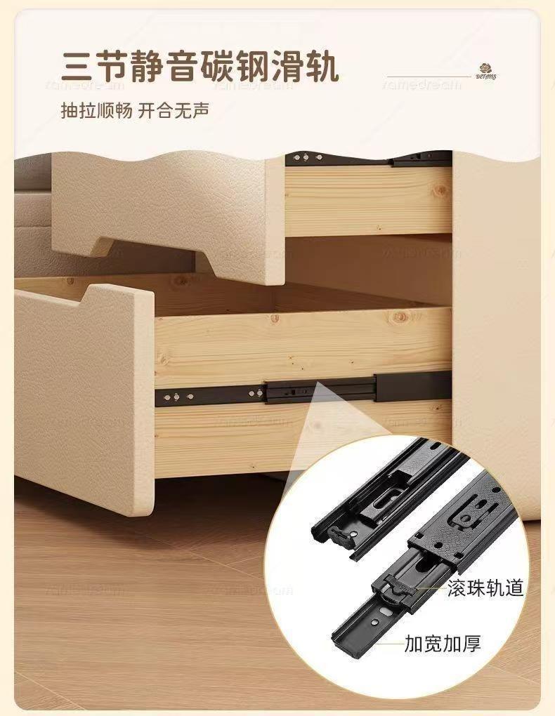 • 商品名称:实木床头柜卧室奶油风简约现代高级感小型三抽床边置物收纳储物柜