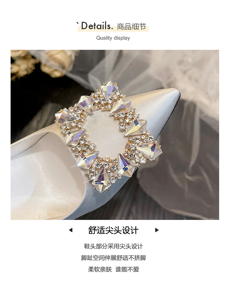 商品名称:2023年新款尖头水钻大码高跟鞋细跟缎面白色婚礼鞋结婚新娘婚鞋女
